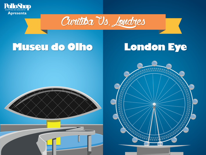 Além disso, existem dois símbolos que representam bem as duas cidades. A London Eye, um dos pontos turísticos mais visitados de Londres, oferece uma vista privilegiada. Em Curitiba, o Museu do Olho, um dos maiores museus da América Latina, foi idealizado por Oscar Niemeyer e é uma das principais atrações turísticas da capital. Para os turistas, os dois pontos são paradas obrigatórias, não acha?
